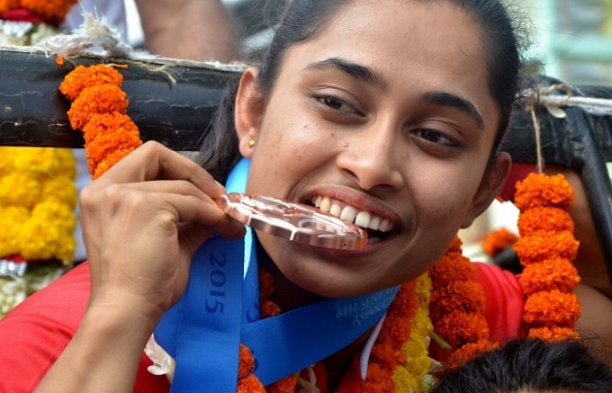 The Tripura girl scored 14.833 as her best effort to finish first in the women’s vaults finals at the Rio Olympic Arena. She defeated 2008 Olympic silver medallist Oksana Chusovitina of Uzbekistan.